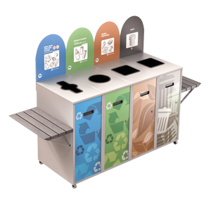 Îlot de tri MultiPlus – 4 voies de 87 litres avec tablettes à cabarets